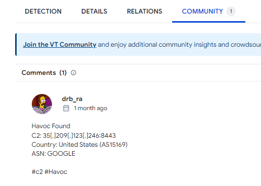 Looks promising. What I'm loving about this hunt, is that the 4th result (35.209.123[.]246) isn't tagged as a C2, which means we may have a solid indicator here.