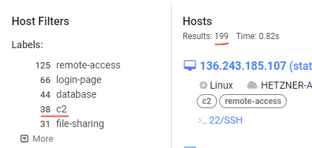 So with the altered query we find a total of 238 IPs likely running Havoc a Teamserver. of the 238, Censys only flags 70 of them.