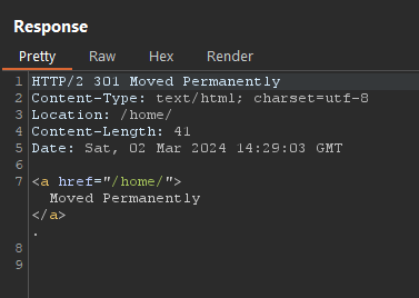 It first tries to redirect to "/home/" under a 301. Which results in a 404 with a length of 0.