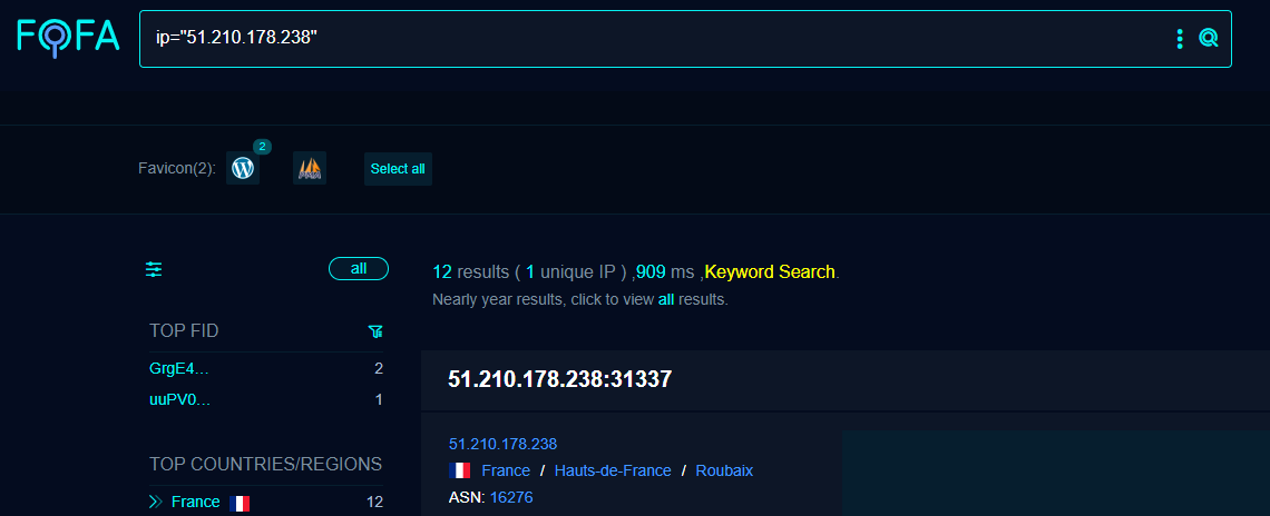 You'll see lots of references to the port 31337. For this example I've shifted to FOFA using IP 51.210.178.238, a Sliver C2 active on OVH SAS in France.